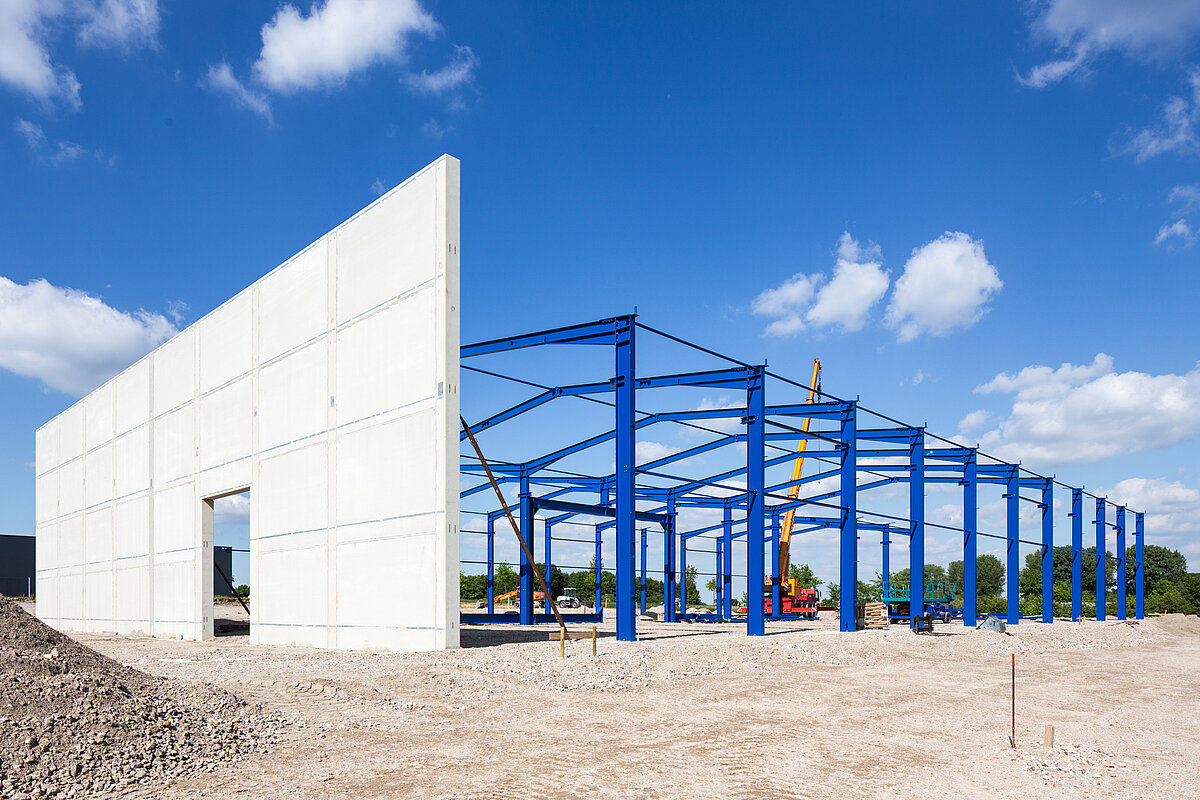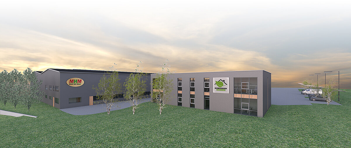 Im Gewerbegebiet „A2 Oelde“ entstand ein Firmenneubau eines holzverarbeitenden Betriebes. Hierfür war die Aufstellung von sehr großen Maschinen (43 Meter) notwendig, die für eine optimale Funktion möglichst stützenfrei aufgestellt werden mussten. Besonderes Augenmerk galt auch der Optimierung der Geländemodellierung, da ca. vier Meter Höhenversatz kompensiert und optimal genutzt werden sollten. Dies wurde durch eine detaillierte 3D-Planung der Gelände-/Entwässerungsflächen möglich. Das Bürogebäude in MHM-Bauweise wird ab Ende 2015 errichtet.