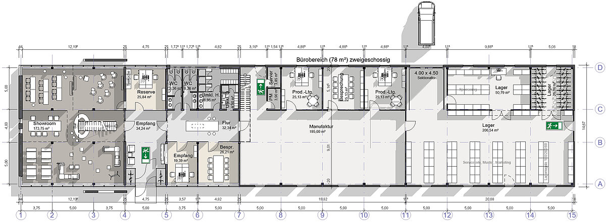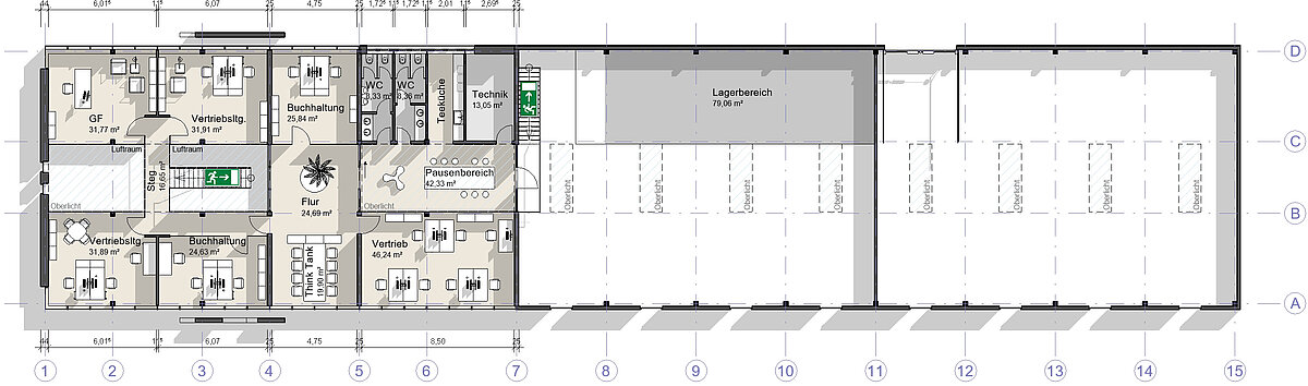 Entwurf einer Fertigungshalle mit Büro in Münster