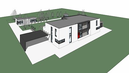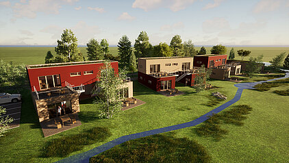 Eine normale Karte mit einem Bild und Text und einem Fussbereich. Die Karte befindet sich in einem Container. Damit Karten in einem Container korrekt dargestellt werden, darf dem Element kein Rahmen zugewiesen werden (Registerkarte "Erscheinungsbild", Feld "Rahmen").