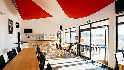 Kunden-Lounge in einer Produktionshalle in Oelde