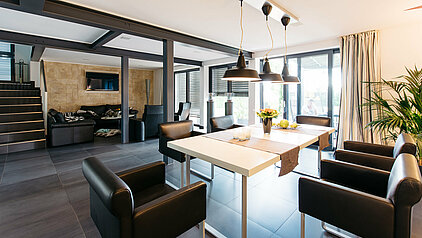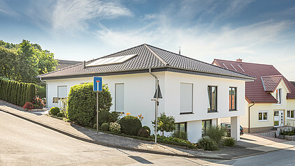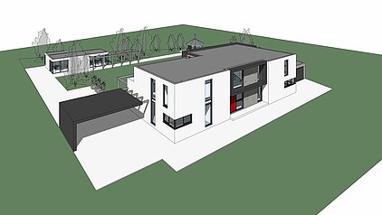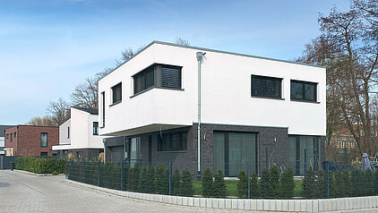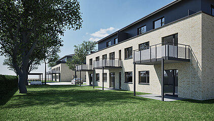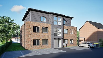 Eine normale Karte mit einem Bild und Text und einem Fussbereich. Die Karte befindet sich in einem Container. Damit Karten in einem Container korrekt dargestellt werden, darf dem Element kein Rahmen zugewiesen werden (Registerkarte "Erscheinungsbild", Feld "Rahmen").